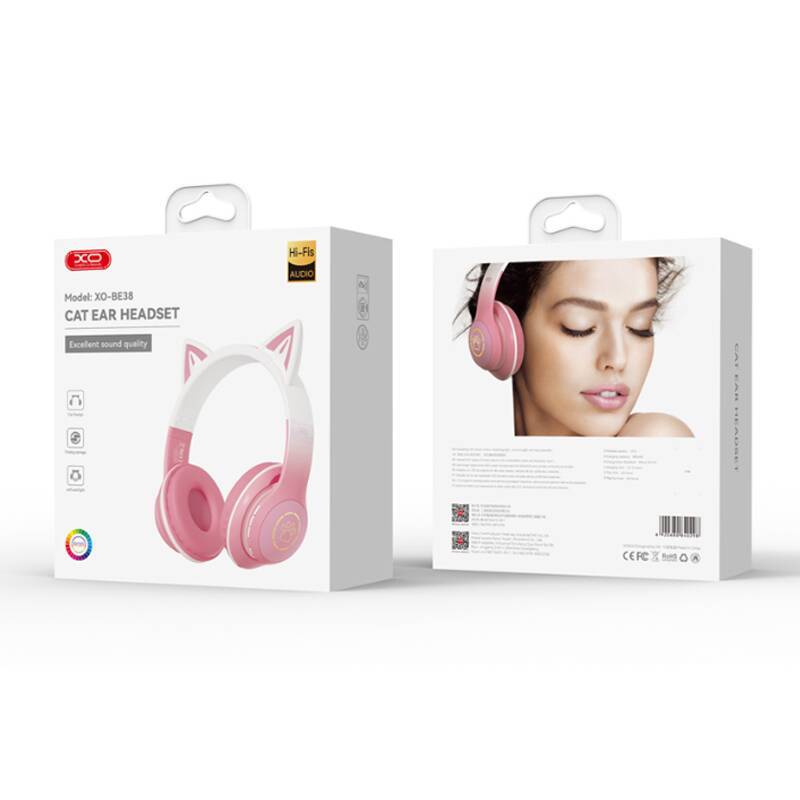 Наушники мониторные беспроводные XO BE38 Cats Ear Colourful Lights Headband Bluetooth Headset розовый 20181938