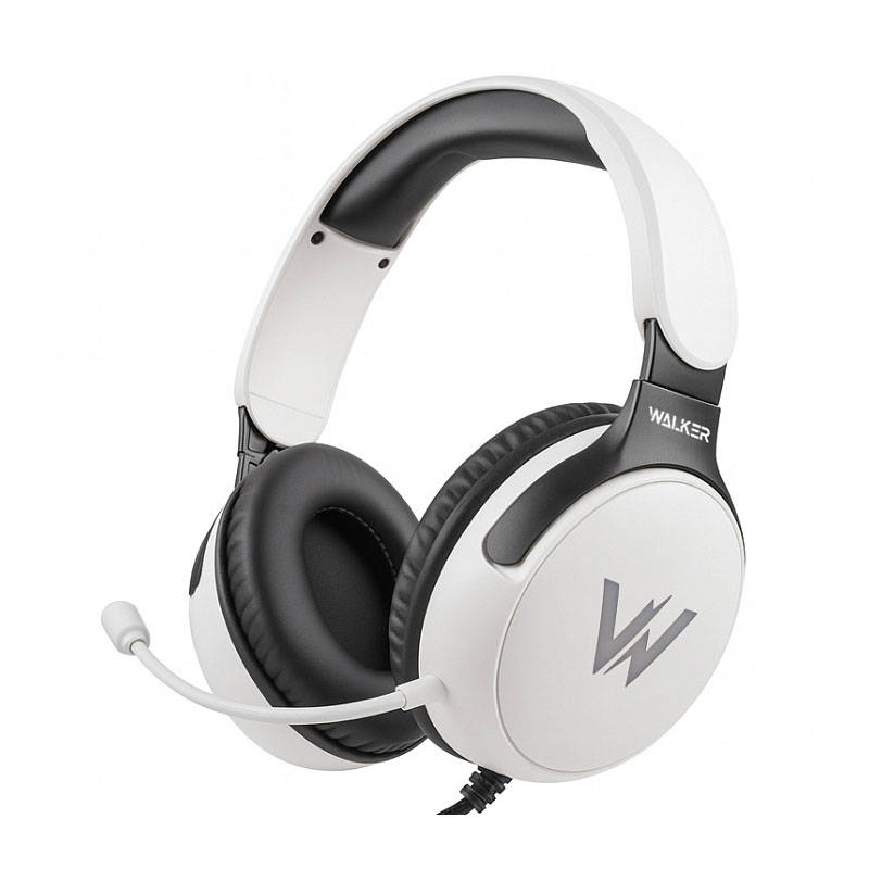 Наушники мониторные проводные WALKER WBT-61, проводные, полноразмерные, гибкий микрофон, с подcветкой, белые 20221659