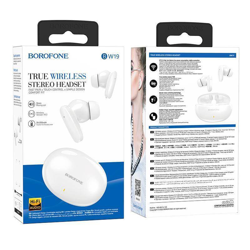 Наушники вакуумные беспроводные BOROFONE BW19 Wonderful true wireless headset Bluetooth (белый) 20083912