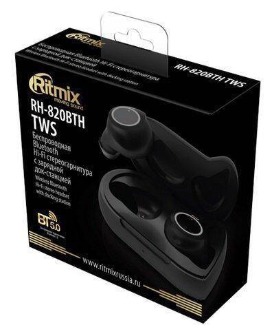 Наушники вакуумные беспроводные Ritmix rh-820 BTH TWS Bluetooth (черный) 20074192
