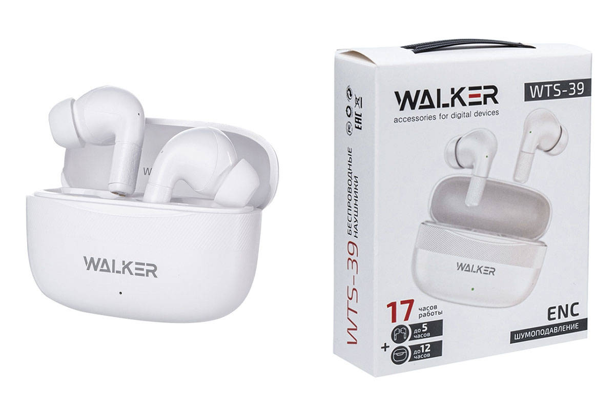 Наушники вакуумные беспроводные WALKER WTS-39, шумопод. ENC, независ. работа наушников, белые 20221664