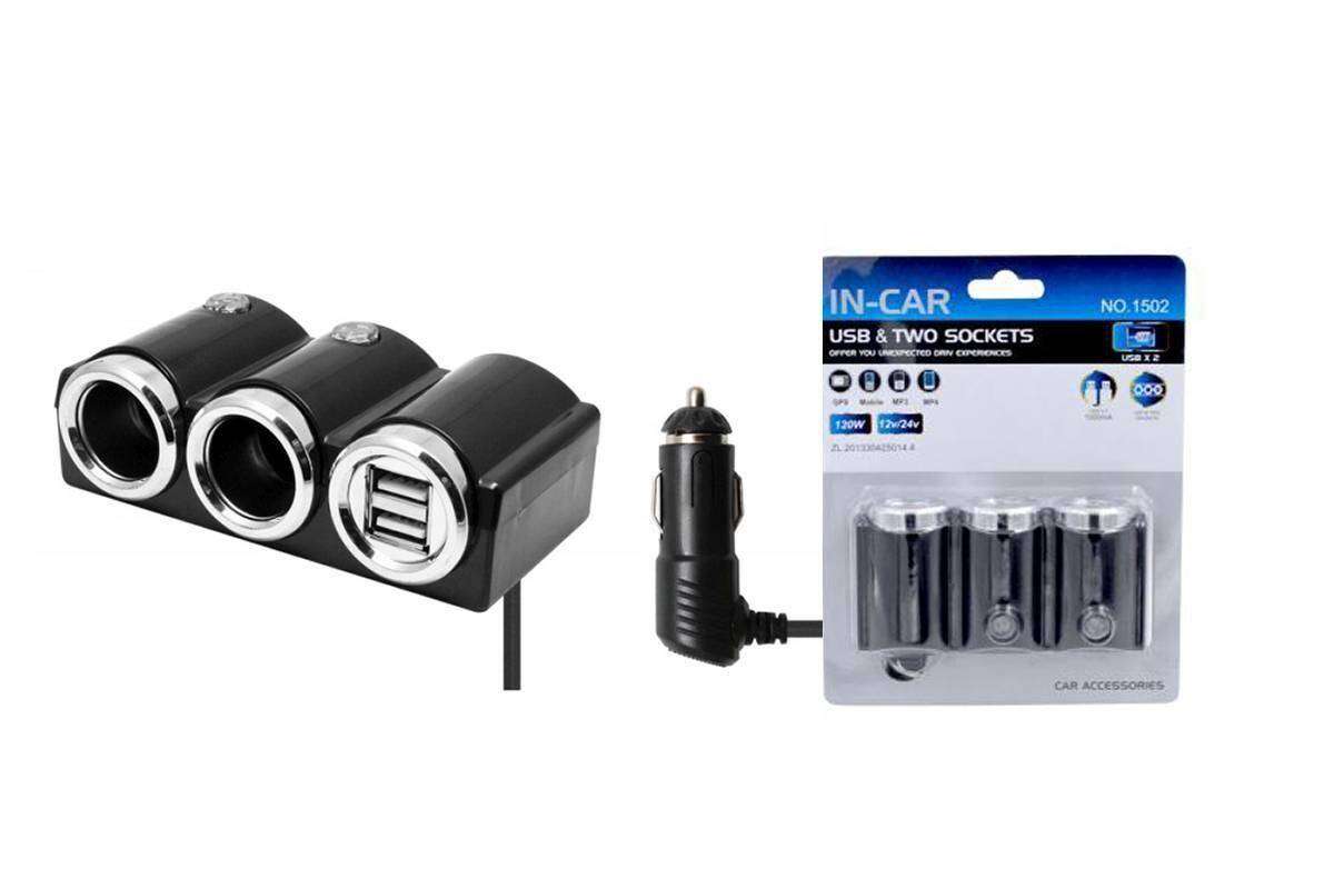 Разветвитель прикуривателя в авто OLESSON 1502 (2 гнезда+2*USB)
