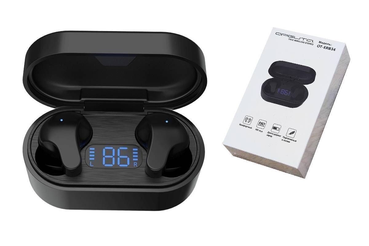 Наушники вакуумные беспроводные Орбита OT-ERB28 (TWS2) Bluetooth (черный)
