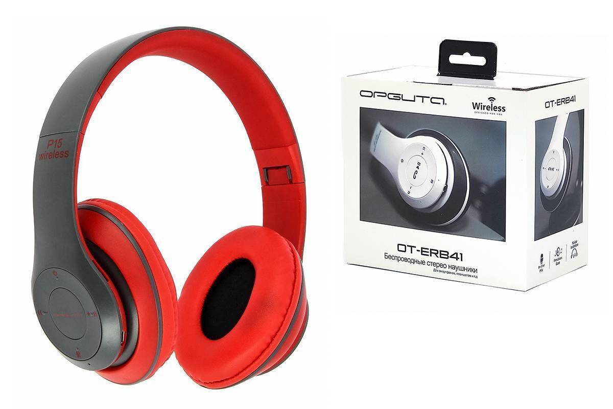 Наушники мониторные беспроводные Орбита OT-ERB41 FM,TF Bluetooth (красный)