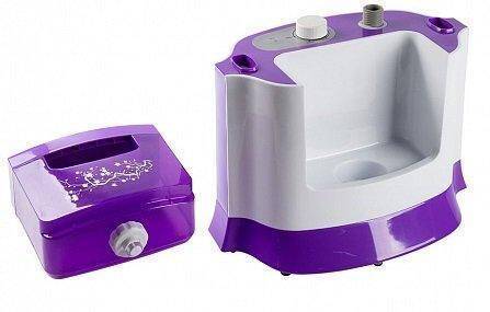 Насадки в комплекте: Держатель насадки-распылителя Плечики Телескопическая стойка Универсальная насадка-распылитель Гибкий паровой шланг Резервуар для воды Термостойкая защитная рукавица Приспособление для отпаривания воротника Тканевый чехол для универсальной насадки-распылителя Насадка-зажим для наведения стрелок на брюках Универсальная щетка-насадка с полимерной щетиной для удаления пыли, пятен, ворсинок и других загрязнений