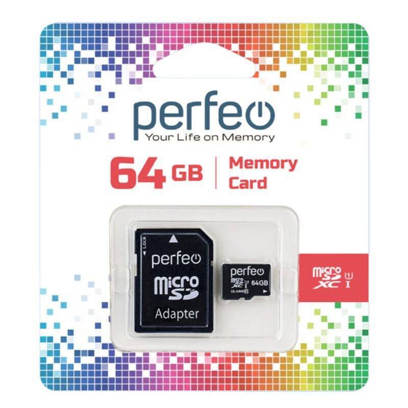 Карта памяти microSDXC Perfeo 64GB High-Capacity (Class 10) UHS-1 с адаптером