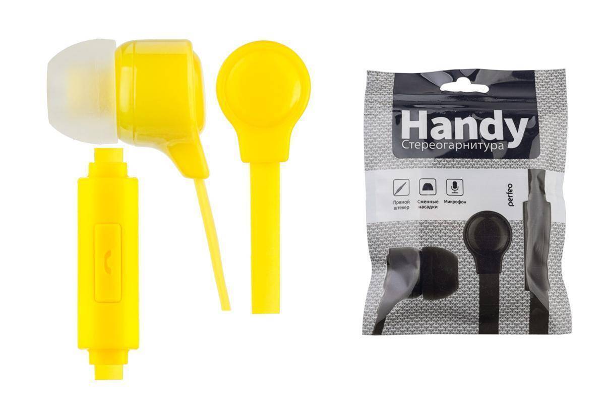 Наушники вакуумные проводные Perfeo c микрофоном HANDY (желтый) new