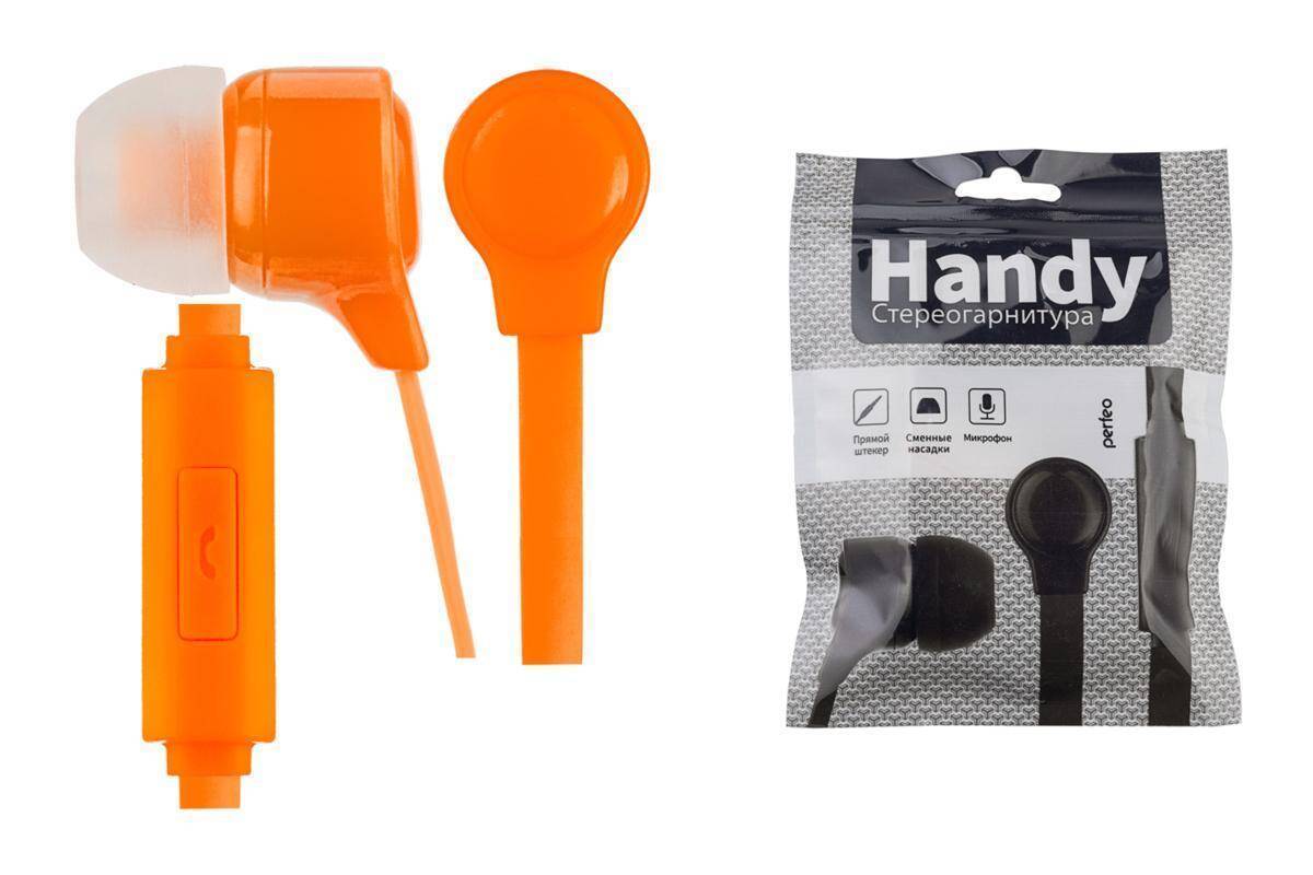Наушники вакуумные проводные Perfeo c микрофоном HANDY (оранжевый) new