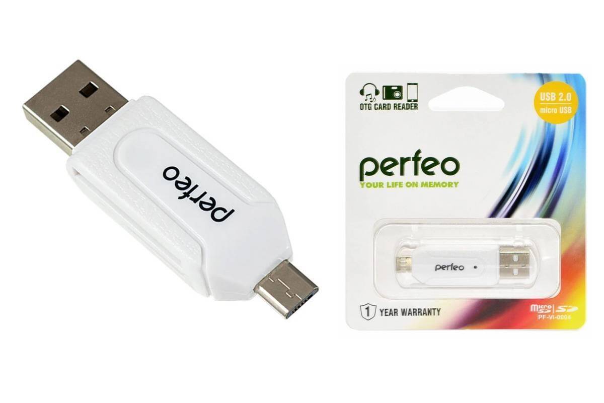 Картридер Perfeo Card Reader SD/MMC+Micro SD+MS+M2 + adapter with OTG, (PF-VI-O004 Blue) синий