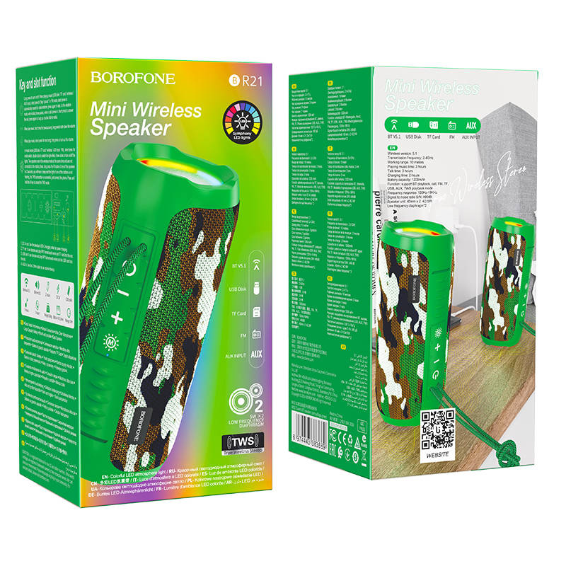 Портативная беспроводная колонка BOROFONE BR21 Sports BT (зеленый камуфляж) 20209072