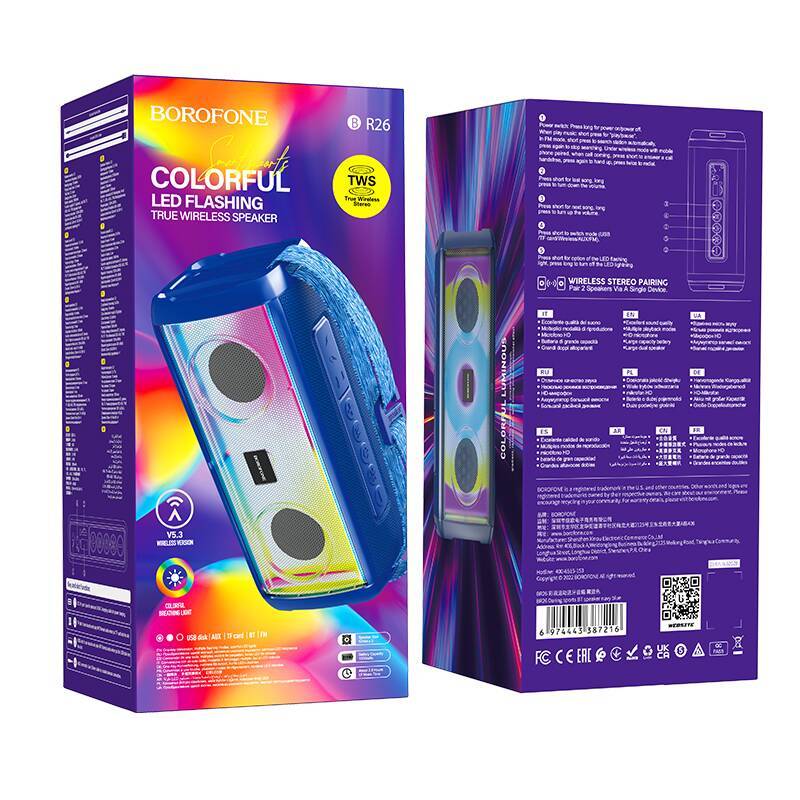 Разноцветная подсветка и два динамика обеспечат вас мощным звуком и создадут атмосферу праздника.