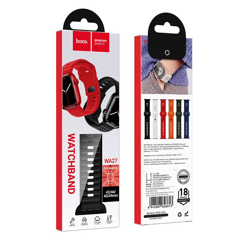 Ремешок для Apple Watch HOCO WA27 Flexible series stepped pattern solid color silicone strap (42/44/45/49 мм) черный 20207462