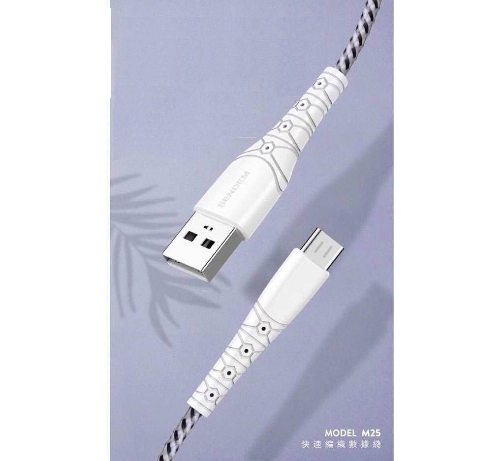 Кабель USB - MicroUSB SENDEM M25, 3A (бело-серый) 1.2м