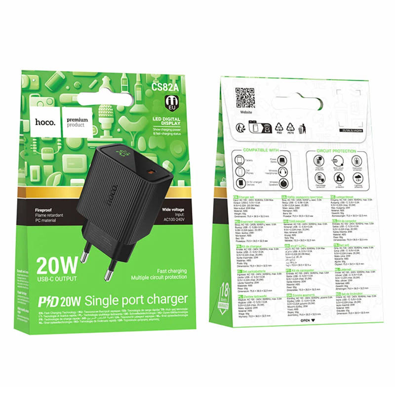 Сетевое зарядное устройство USB-C HOCO CS82A Excellent PD20W зарядное устройство с цифровым дисплеем (черный) 20219650