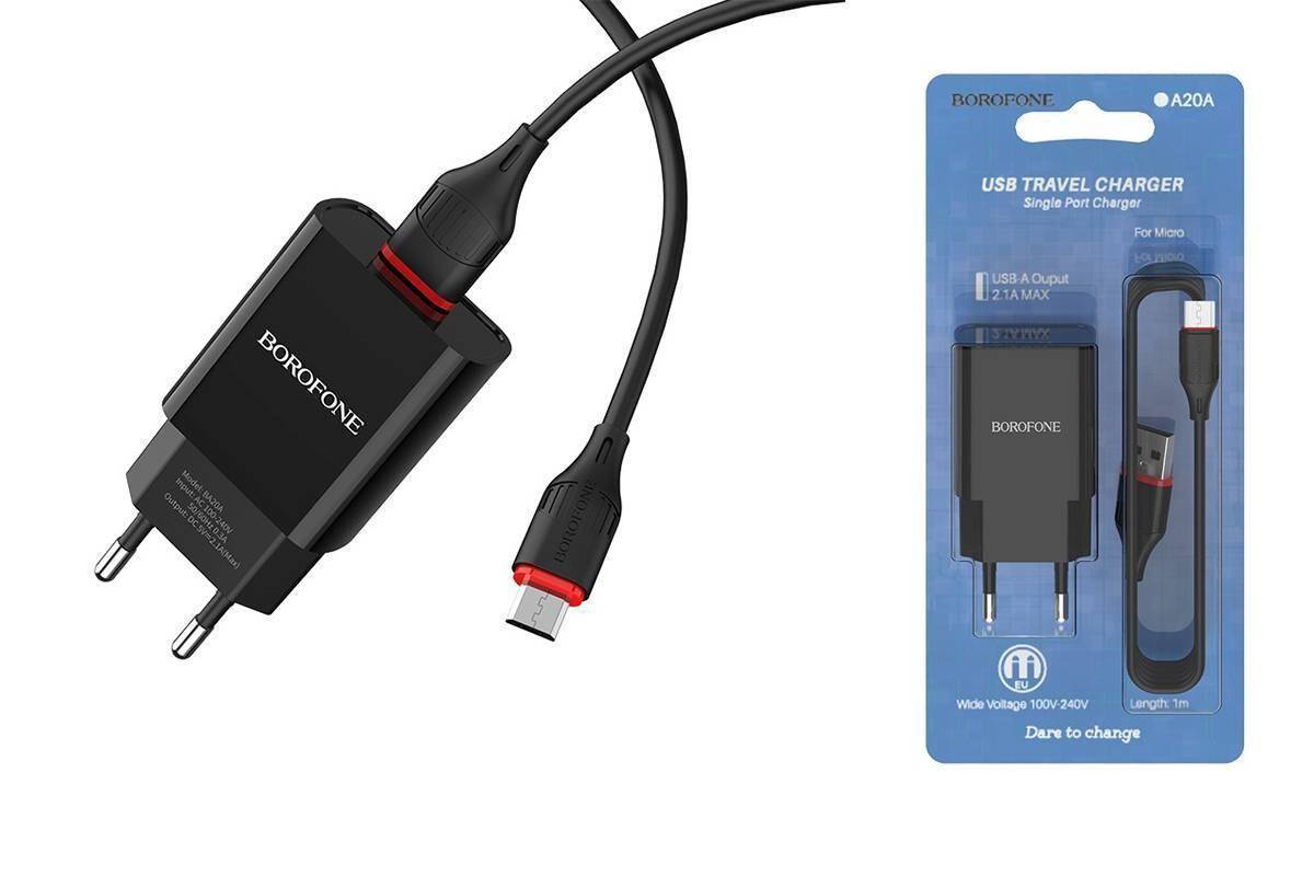 Сетевое зарядное устройство USB + кабель MicroUSB BOROFONE BA20A Sharp 2100mAh (черный) 20029679