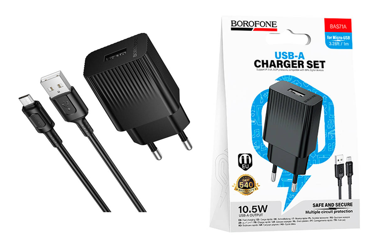 Сетевое зарядное устройство USB + кабель MicroUSB BOROFONE BAS71A Source, черный 20219967
