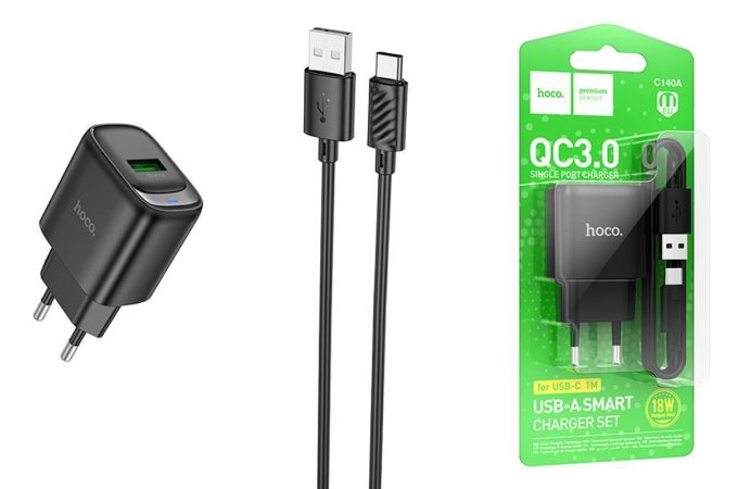 Сетевое зарядное устройство USB + кабель Type-C HOCO C140A Smart QC3.0 (черный) 20191770
