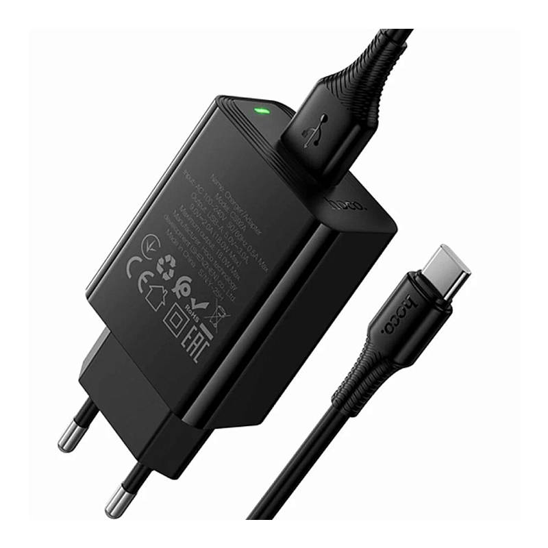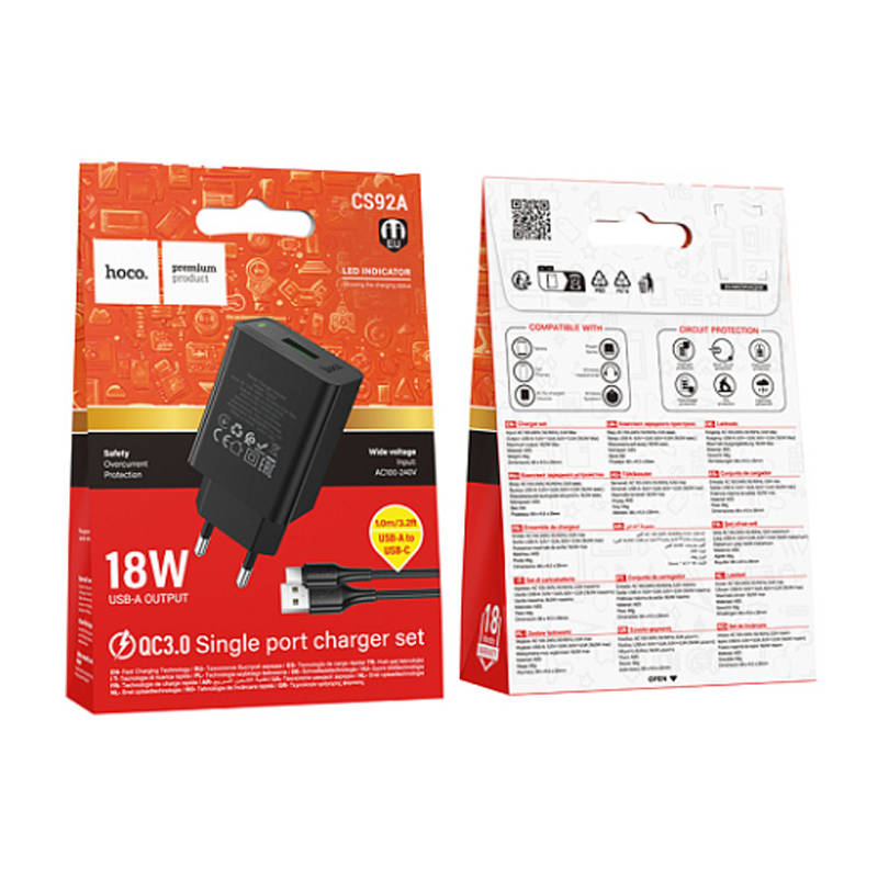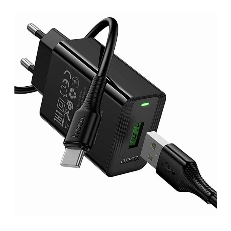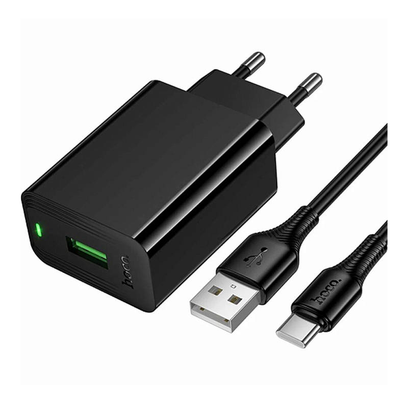 Сетевое зарядное устройство USB + кабель Type-C HOCO CS92A QC3.0 18W (черный) 20220155