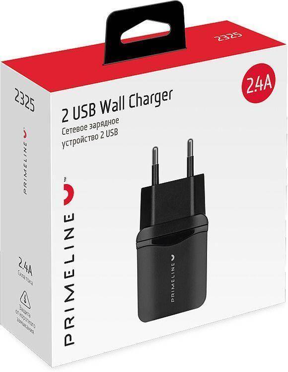 Сетевое зарядное устройство USB Prime Line (2325) 2 USB 2.4A, (черный) 20075413