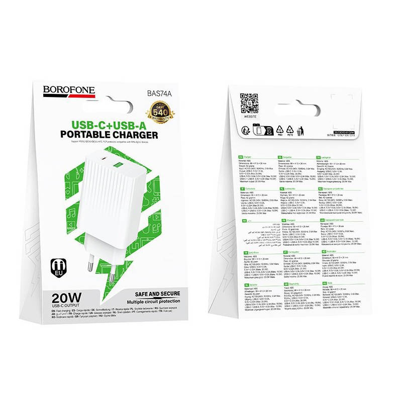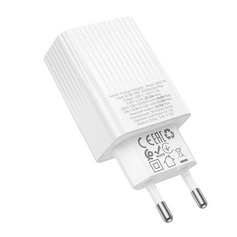 Сетевое зарядное устройство USB + USB-C BOROFONE BAS74A Source PD20W+QC3.0 (EU) белый 20219969