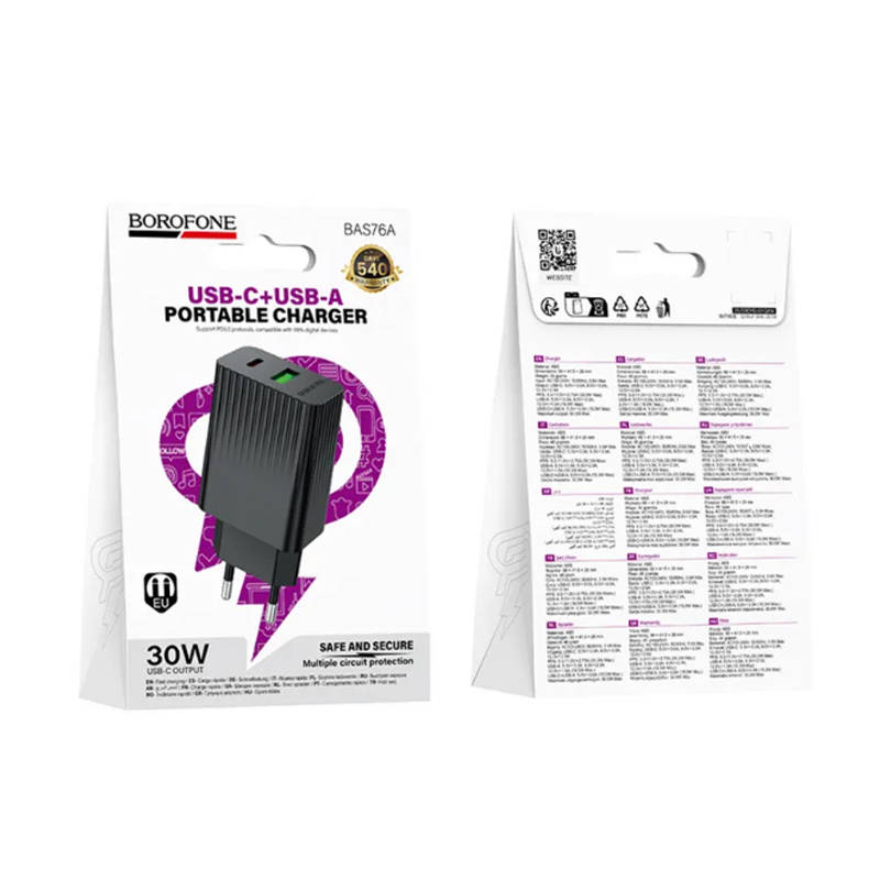 Сетевое зарядное устройство USB + USB-C BOROFONE BAS76A PD30W+QC3.0 (черный) 20222476