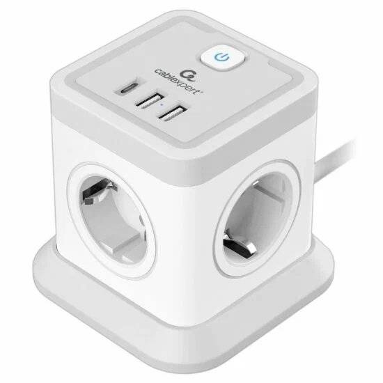 Сетевой фильтр с USB заряд. Cablexpert Tower TWR-4-CU2-W-2 белый, 4 розет, 10А, 1xType-C PD, 20Вт, 2хUSB, 2м 20197801