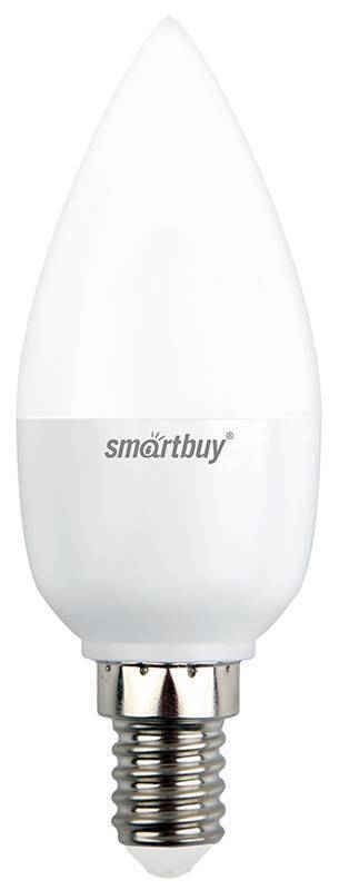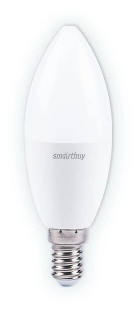 Лампа светодиодная Smartbuy свеча C37 E14 9.5W (900lm) 6000K 6K матовый пластик SBL-C37-9_5-60K-E14