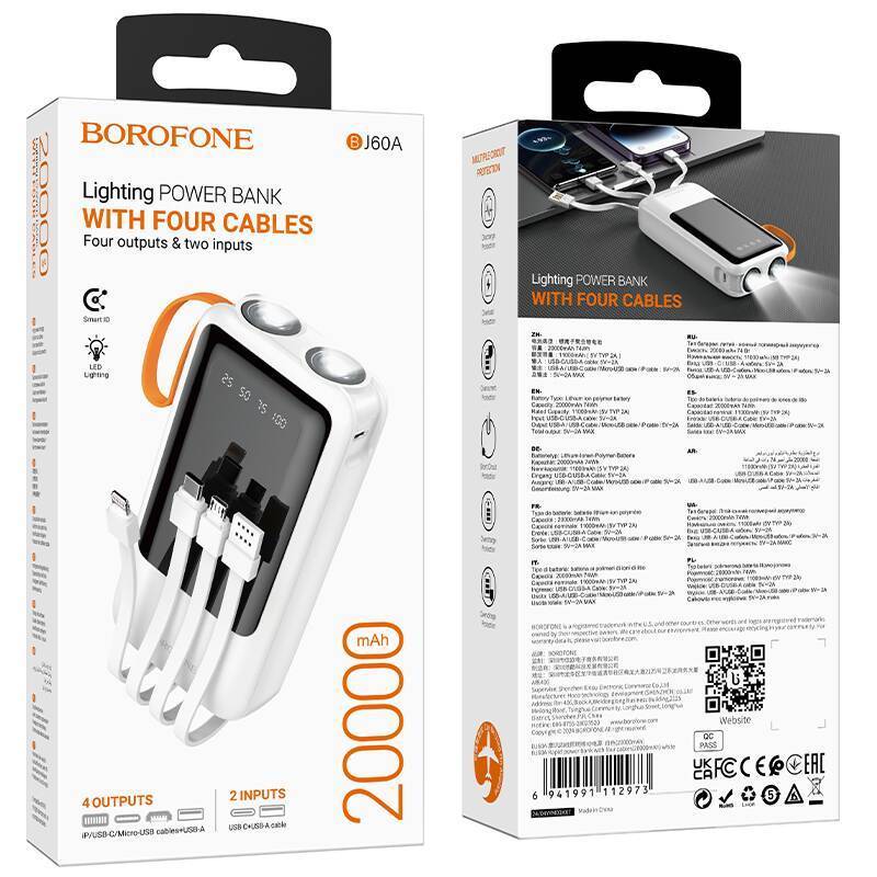 Универсальный дополнительный аккумулятор Power Bank BOROFONE BJ60A Rapid портативный аккумулятор с 4 кабелями (20000mAh) (белый) 20189942