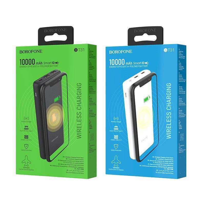 Универсальный дополнительный аккумулятор Power Bank BOROFONE BT31 + БЗ 10W (10000 mAh) (черный) 20039526