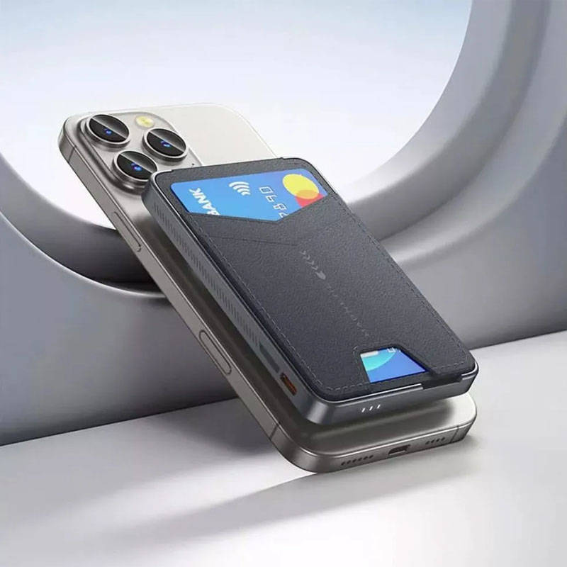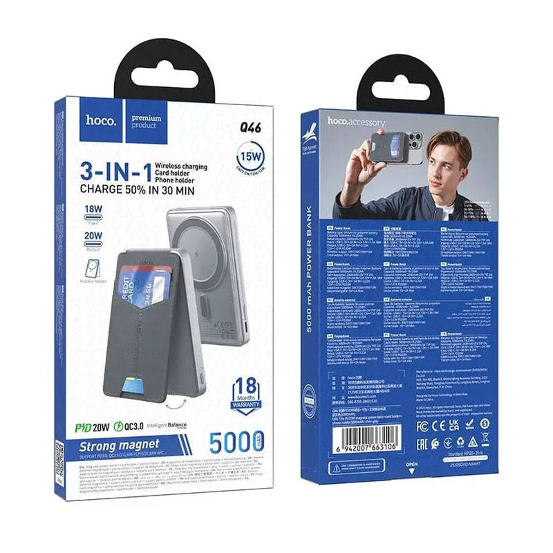Универсальный дополнительный аккумулятор Power Bank HOCO Q46 Title PD20W magnetic+cart holder+phone holder(5000mAh) Silver gray 20213534