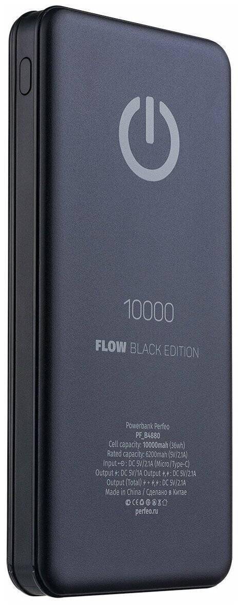 Универсальный дополнительный аккумулятор Power Bank Perfeo Powerbank Flow (10000 mAh) In Type-C/Micro usb (черный) 20064179
