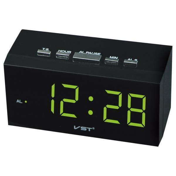 Часы настольные VST 801WX-4 (дата, температура) с блоком (зеленый)
