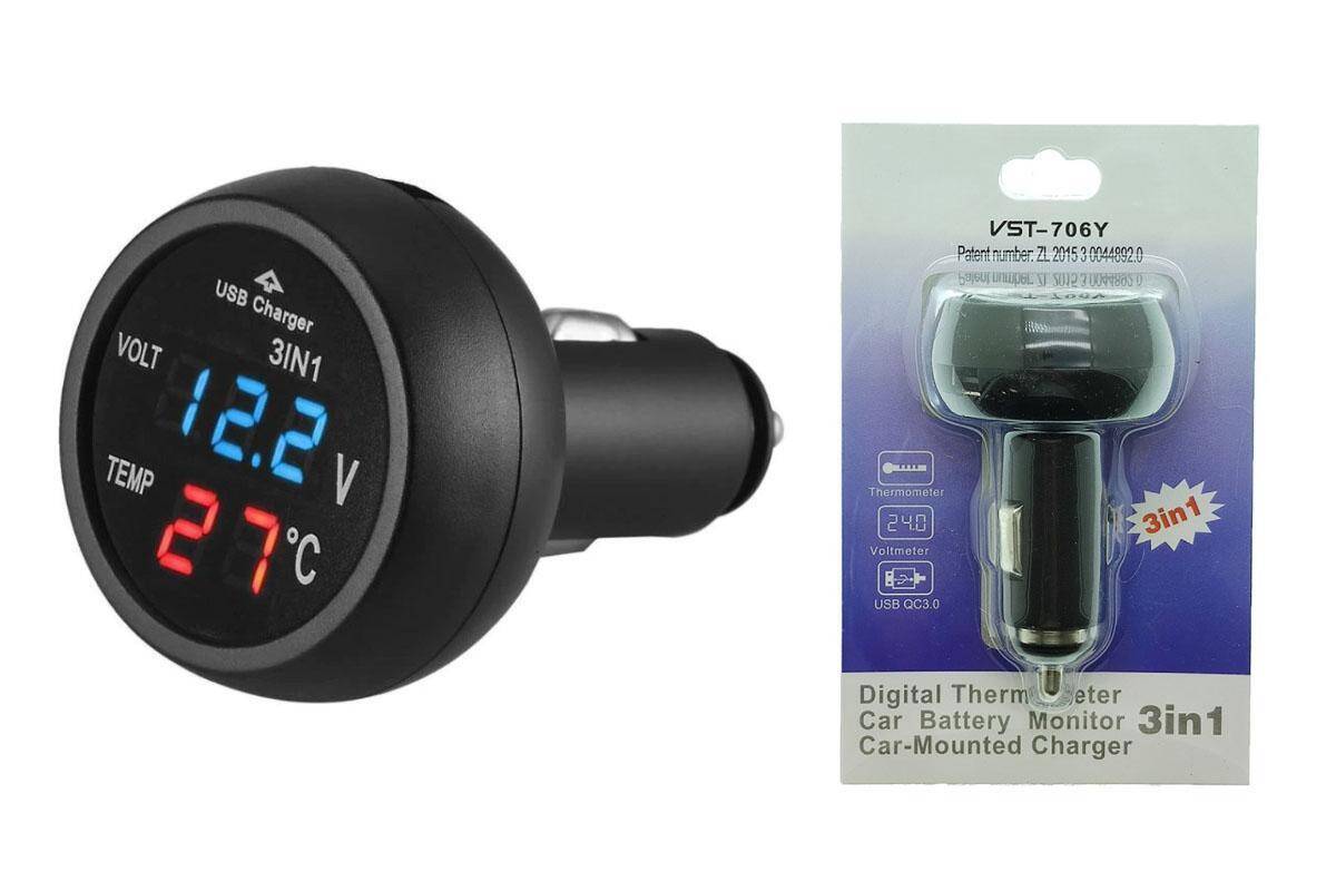 Автомобильное зарядное устройство АЗУ USB VST 706Y-5 ЗУ QC.3.0,3500mA, вольтметр, термометр (черный)