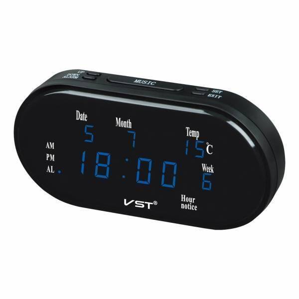Часы настольные VST 801WX-5 (дата, температура) с блоком (синий)