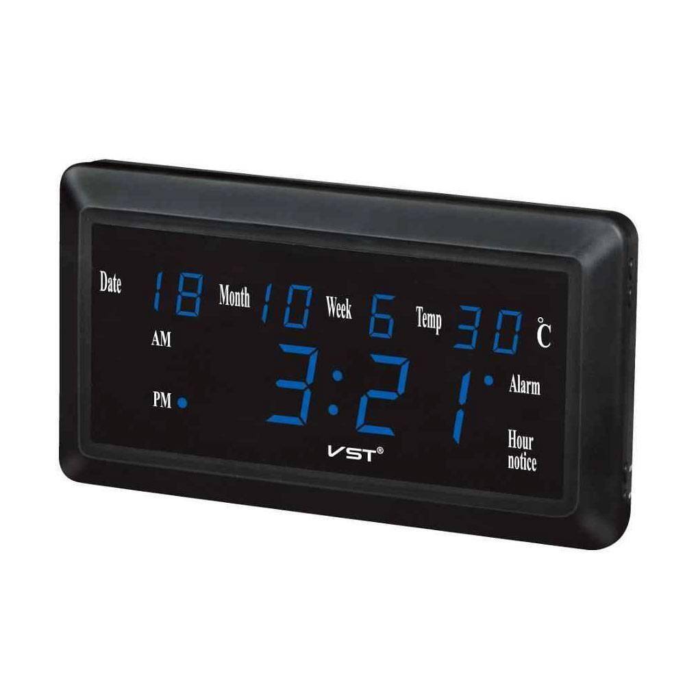 Часы настенные VST 795W-5 (дата, температура) с блоком (синий)