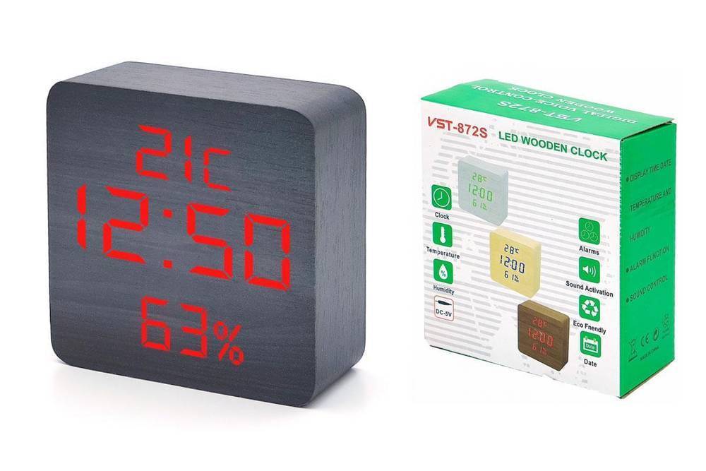 Часы настольные VST 872S-3 (Красные цифры, черный корпус) (без блока)