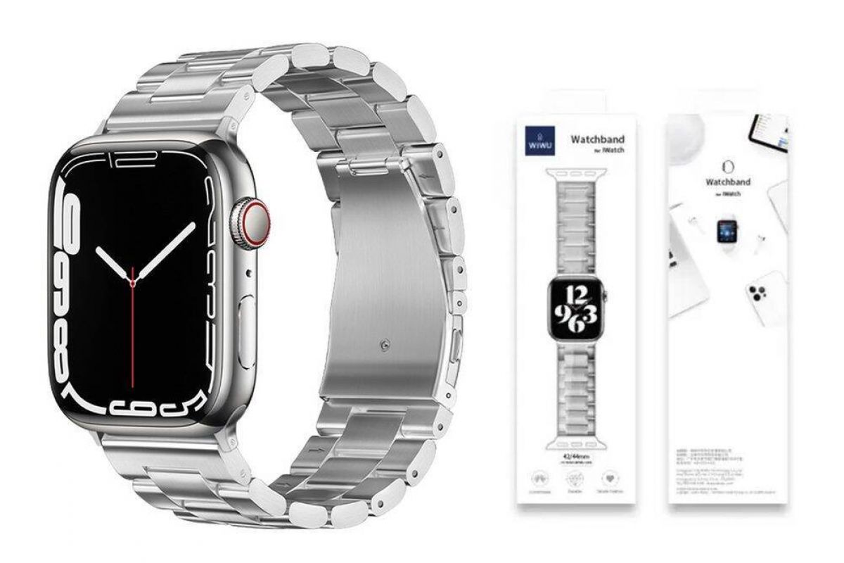 Ремешок для Apple Watch HOCO WA10 Grand series three-bead steel strap (42-49 мм, silver)
