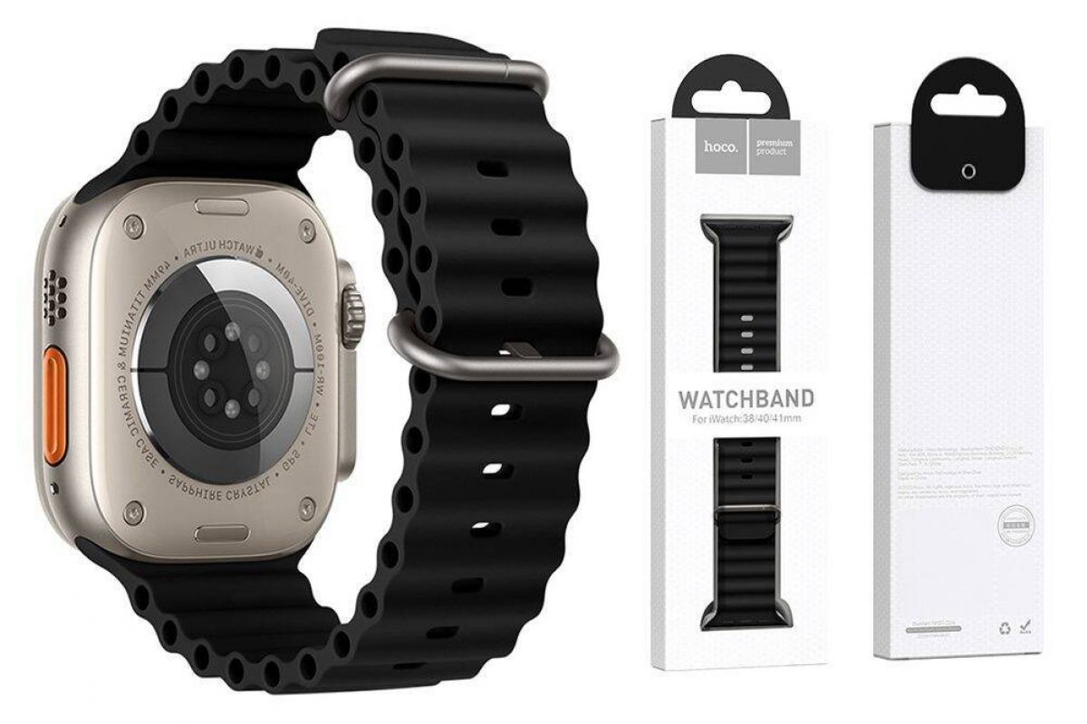Ремешок для Apple Watch HOCO WA12 Силиконовый ремешок Original series marine с двойной пряжкой (38-41 мм, черный)