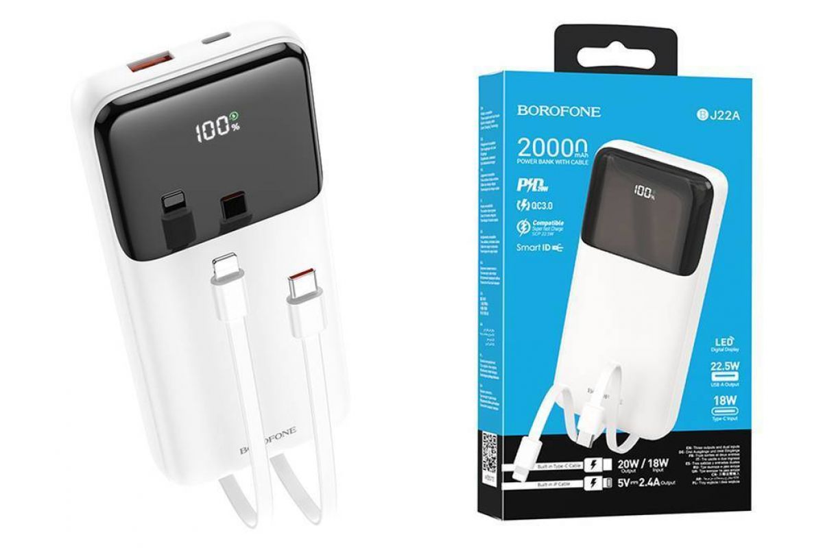 Универсальный дополнительный аккумулятор Power Bank BOROFONE BJ22A 22.5W + PD20W (20000 mAh) (белый)