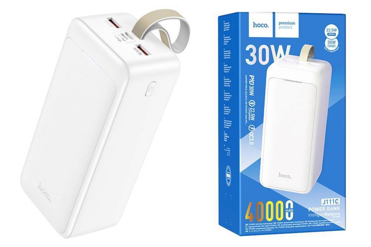 Универсальный дополнительный аккумулятор Power Bank HOCO J111С 30W (40000 mAh) (белый)