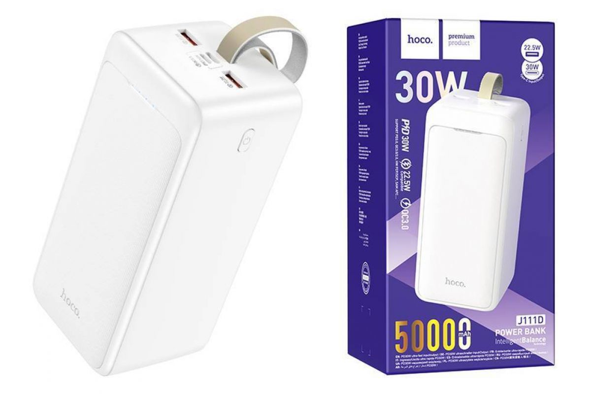 Универсальный дополнительный аккумулятор Power Bank HOCO J111D 30W (50000 mAh) (белый)
