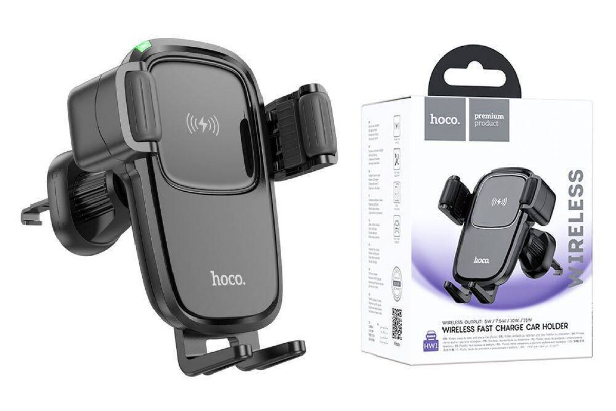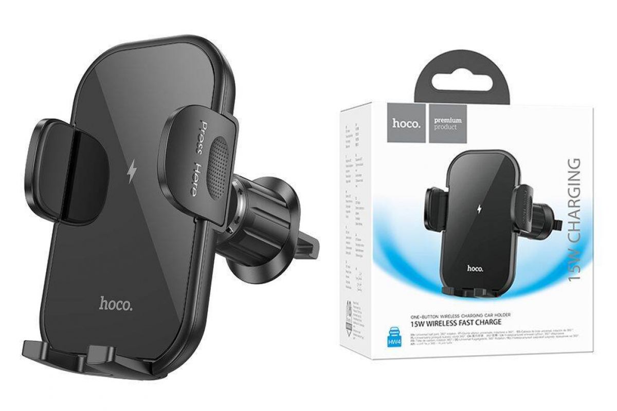 Держатель автомобильный для телефона HOCO HW4 Jorney wireless fast charging car holder (в воздуховод) черный