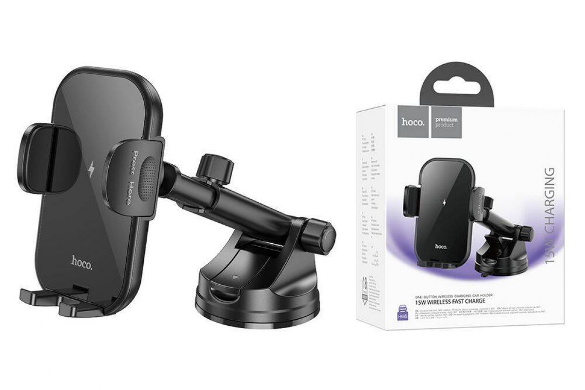 Держатель автомобильный для телефона HOCO HW5 Jorney wireless fast charging car holder ( на консоль) черный
