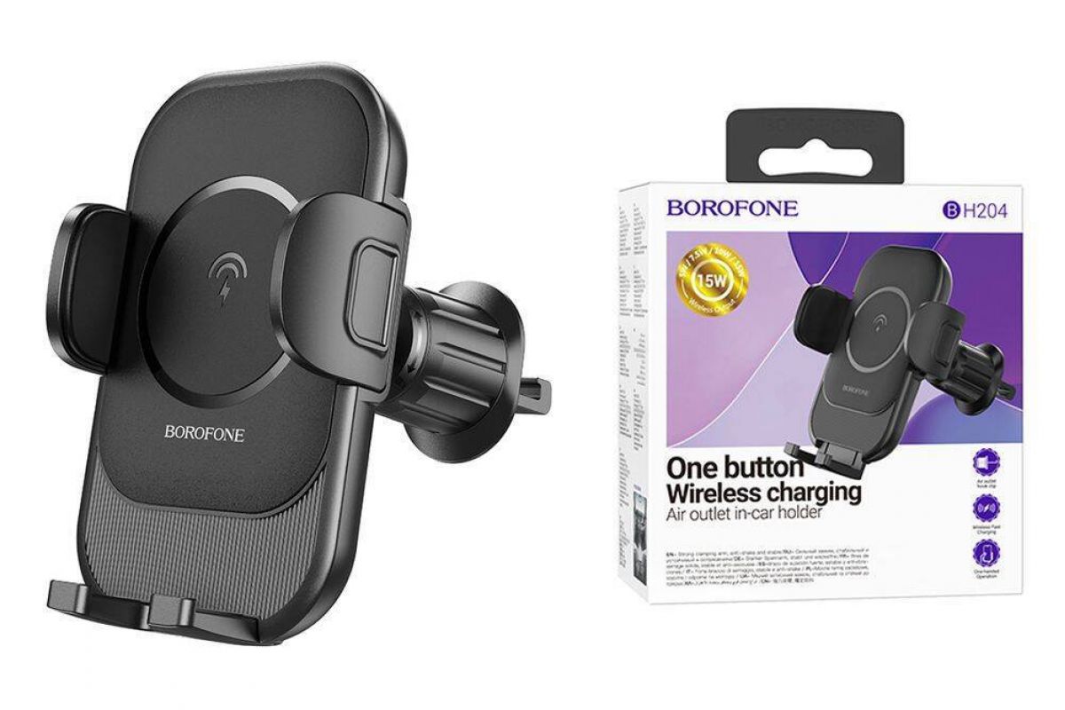 Держатель автомобильный для телефона BOROFONE BH204 magnetic wireless Fast charger в решетку воздуховода черный