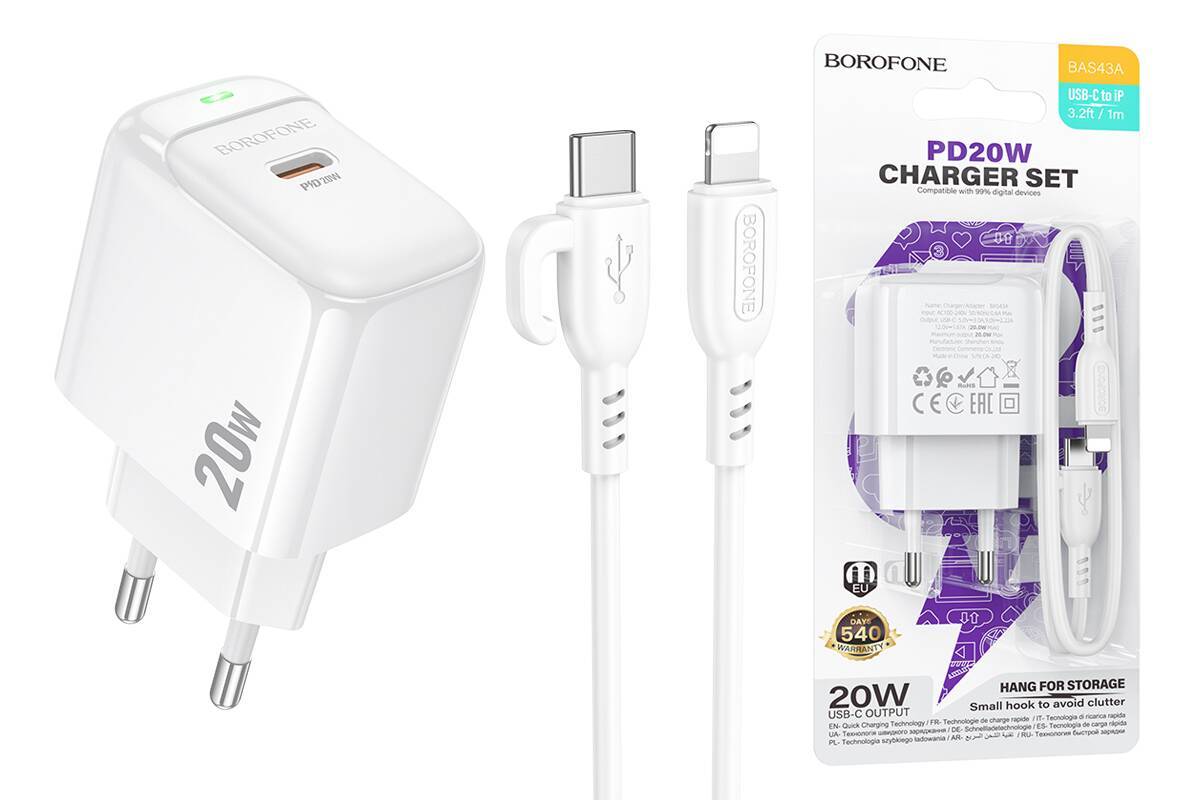 Сетевое зарядное устройство USB-C + кабель Lightning - Type-C BOROFONE BAS43A Potential PD20W (белый)