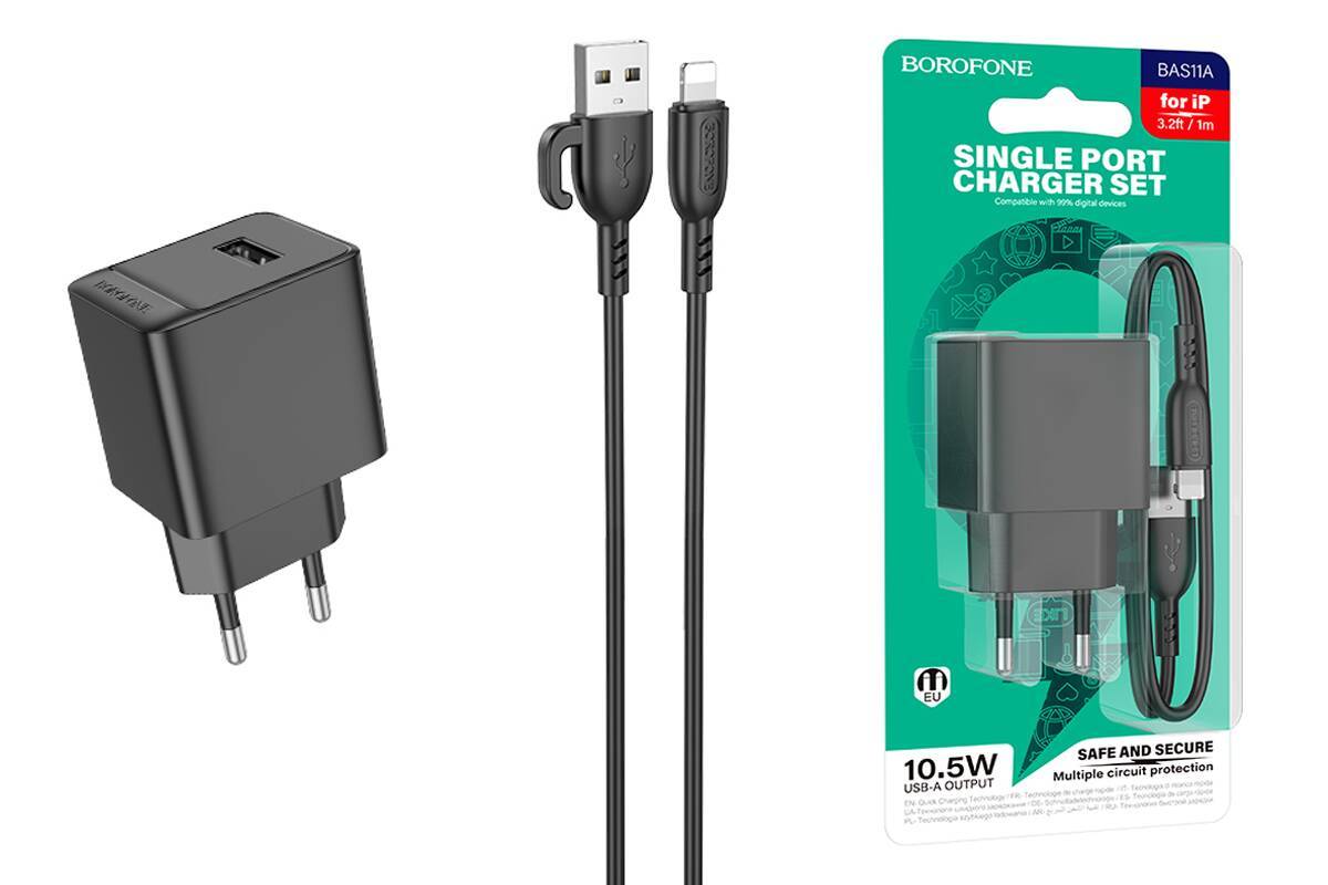 Сетевое зарядное устройство USB + кабель Lightning BOROFONE BAS11A Erudite  (черный) Сетевое зарядное устройство USB + кабель Lightning BOROFONE BAS11A Erudite  (черный)