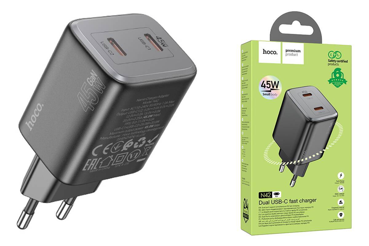 Сетевое зарядное устройство 2USB-C HOCO N42 PD45W (черный)