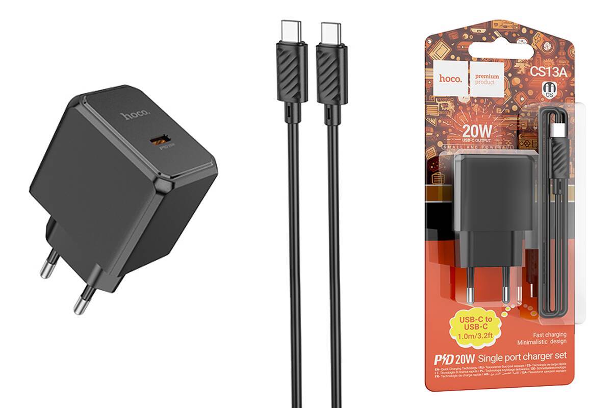 Сетевое зарядное устройство USB-C + кабель Type-C HOCO CS13A PD20W (черный) Сетевое зарядное устройство USB-C + кабель Type-C HOCO CS13A PD20W (черный)
