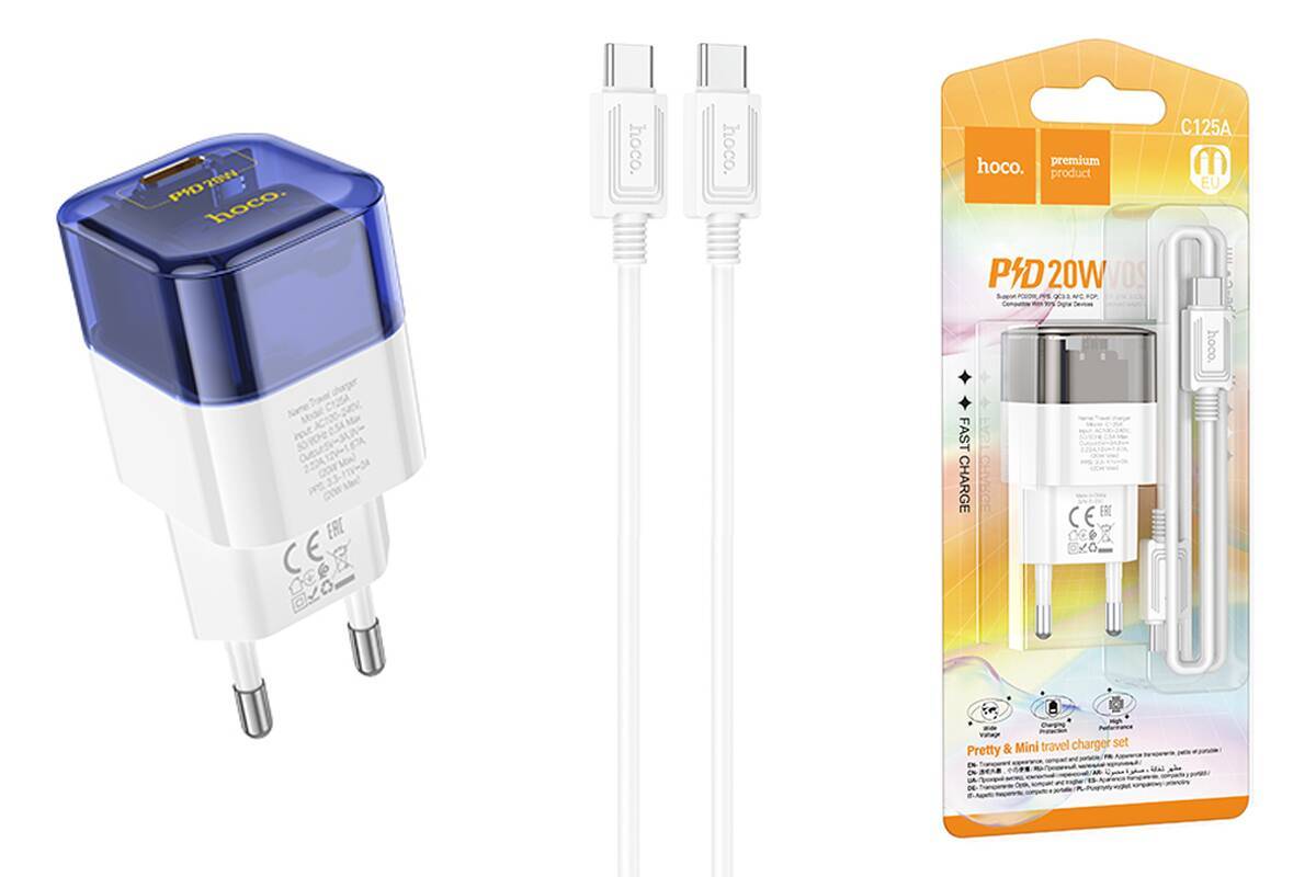 Сетевое зарядное устройство USB-C + кабель Type-C HOCO C125A PD20W (синий прозрачный )