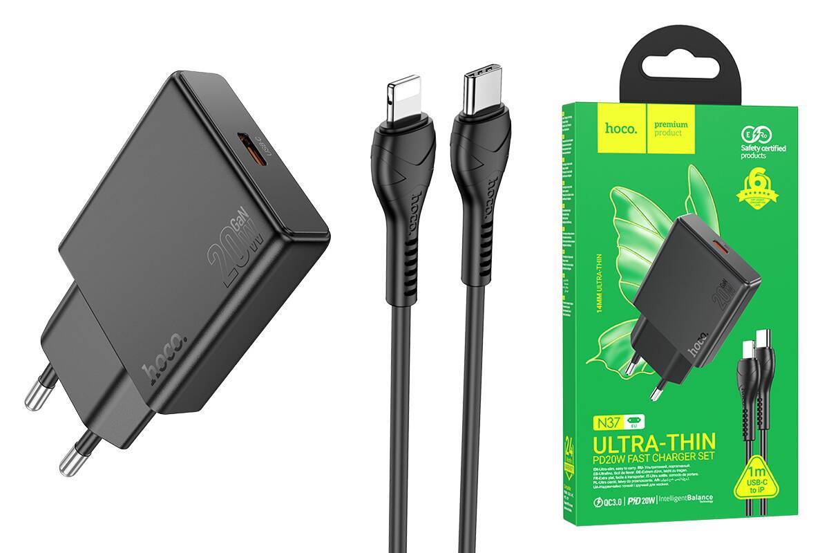 Сетевое зарядное устройство USB-C + кабель Lightning - Type-C HOCO N37 PD20W (черный)